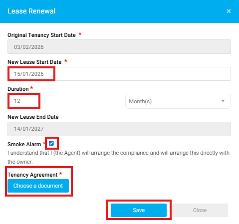 • If relevant, ensure that your Smoke Alarm Contractor is booked to test and check the smoke alarms prior to the commencement of the new fixed term tenancy